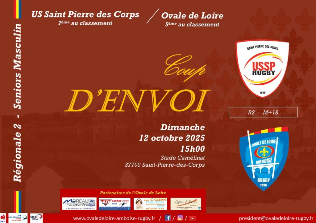 Dimanche 12 octobre 2025, Tous avec les Sang et Or Ovalien, pour un derdy Régionale 2, à 15h00, à Saint Pierre des Corps.